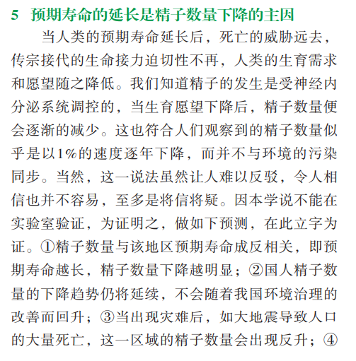 更令人震惊的是,我还找到一篇不甚严谨的文章,一开头便说“上面这些说法,经不起推敲”,“预期寿命的延长是精子数量下降的主因”。