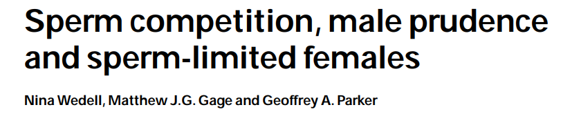 [3] Wedell, N., Gage, M.J.G. and Parker, G.A. (2002). Sperm competition, male prudence and sperm-limited females. Trends in Ecology & Evolution, 17(7), pp.313–320. doi:10.1016/s0169-5347(02)02533-8.