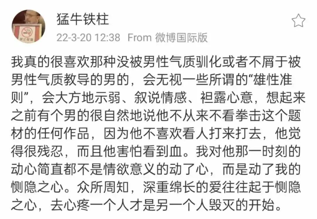 但正如这位博主说的,那些还未被所谓的“男性气质”所教导的男生,可能,还有共情的可能性。