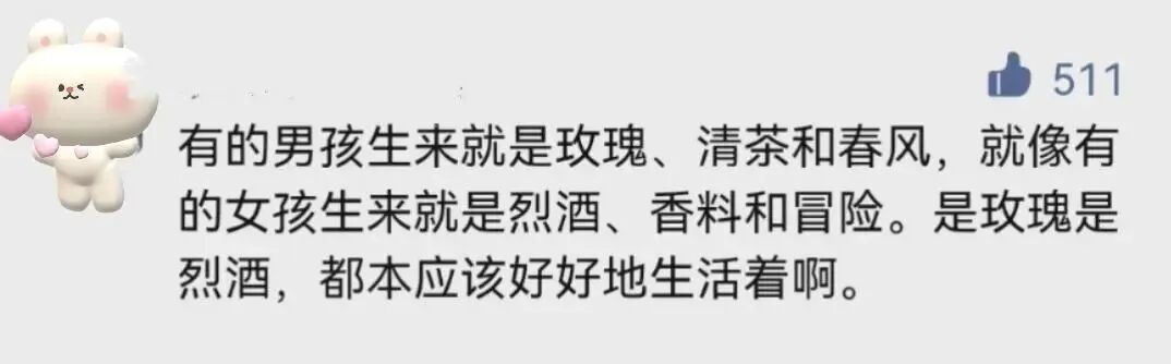 反之,大家也对那些曾经嗤之以鼻的“娘炮”“玻璃心”男性,慢慢开始改观,也能越来越自如地享受这个能接受多元化气质审美的世界。