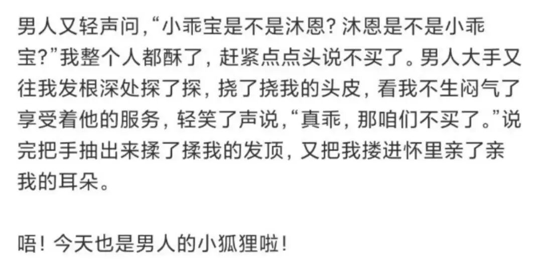 一位女生想撒娇让男生为她买键盘,然后男生一通权衡利弊和她说没必要买,然后男生用逗小动物的方式逗她开心,而她自己也说:“今天也是男人的小狐狸!”