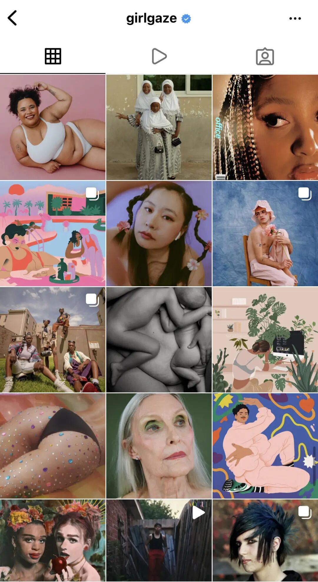 国外的社交媒体上有一个名为girlgaze的账号,它展示了许多不被主流媒体认为是美的形象,鼓励大家尊重个体差异,形成多元审美的同时记录身边的人和事。