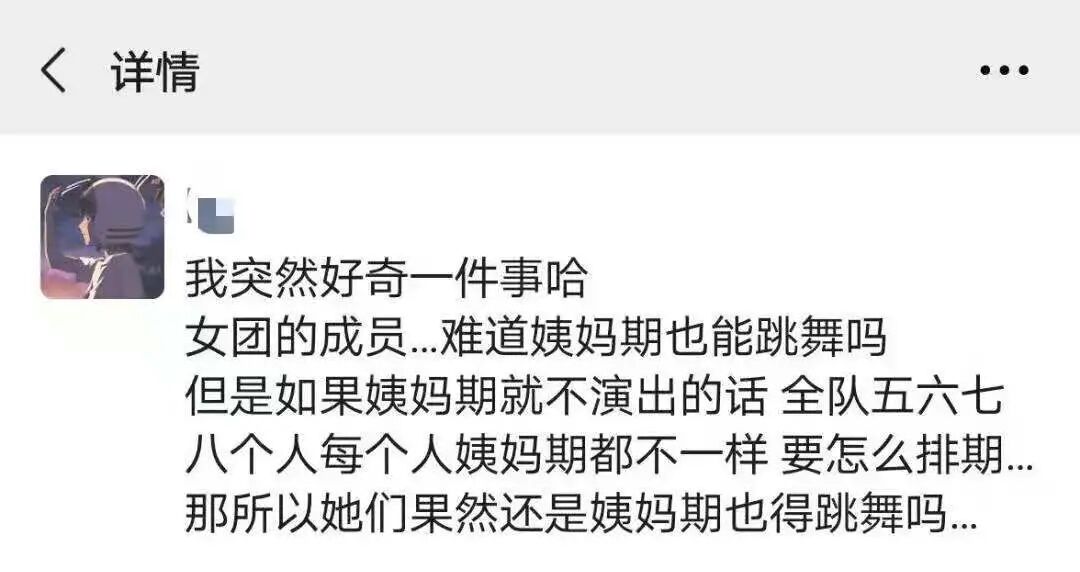 但是,经期跳舞、高强度运动真的不会让人感到难受吗?经纪公司、女性运动员的教练,他们会思考这个问题吗?