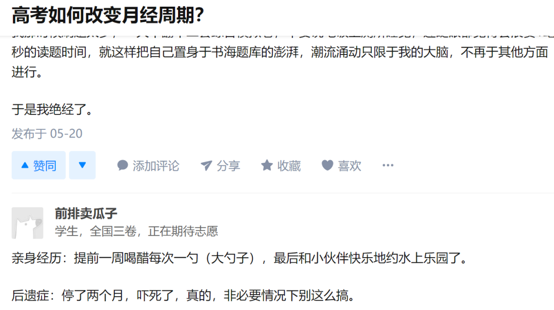 不知道有没有姐妹曾经为了高考、为了体育考试而被建议“吃药调节经期”?我身边有很多朋友,为了保证重要考试时一切顺利,提前一个月开始吃药。