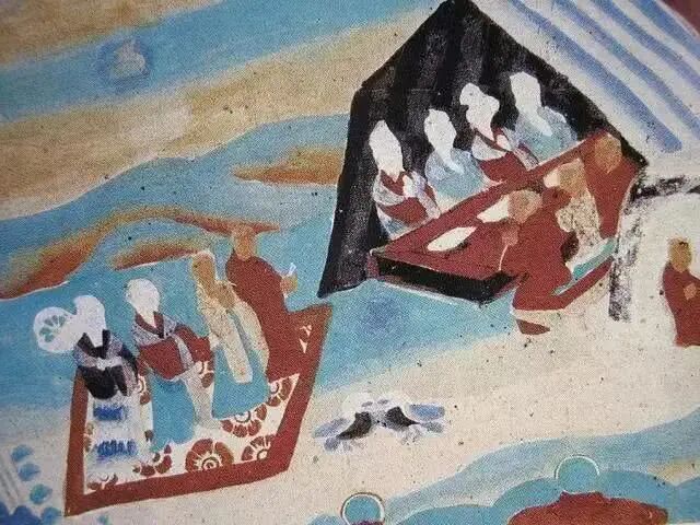 图为 莫高窟 晚唐 《婚礼奠雁图》