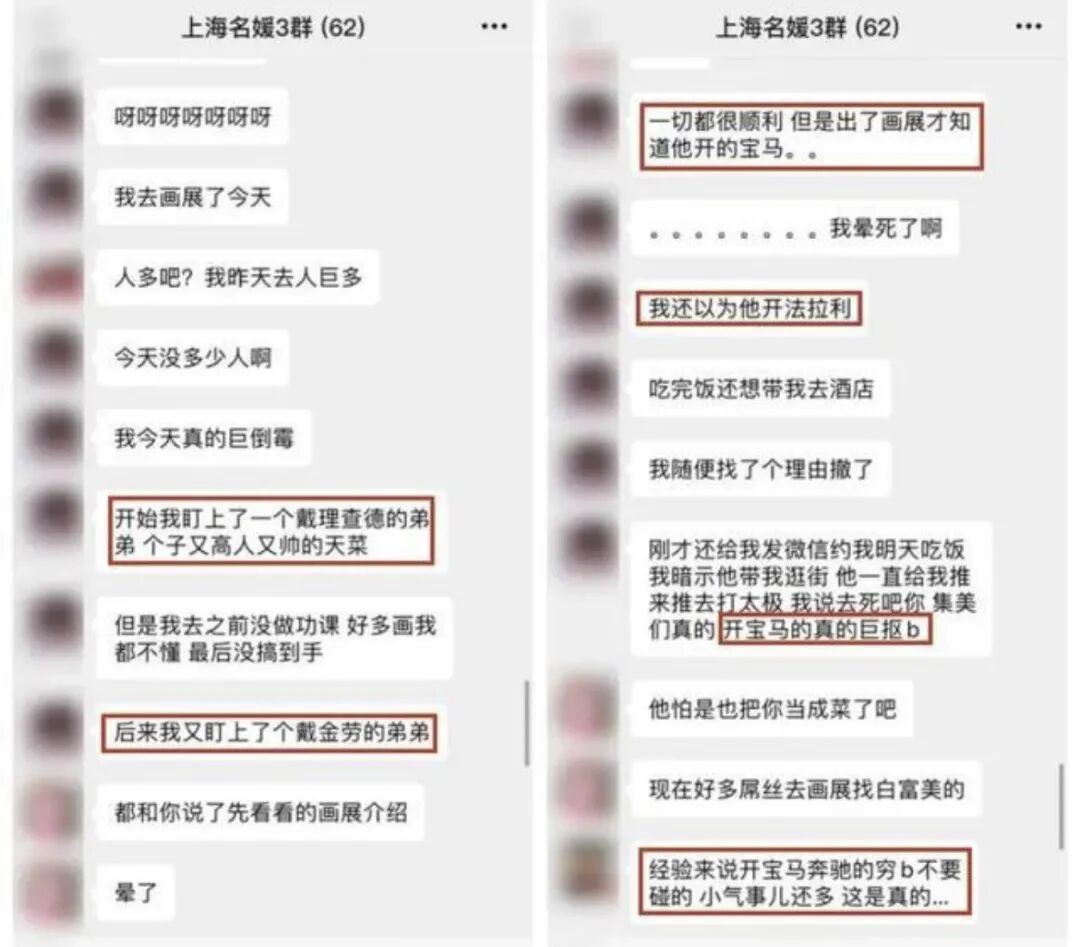 图为 被曝光的上海名媛群聊天记录