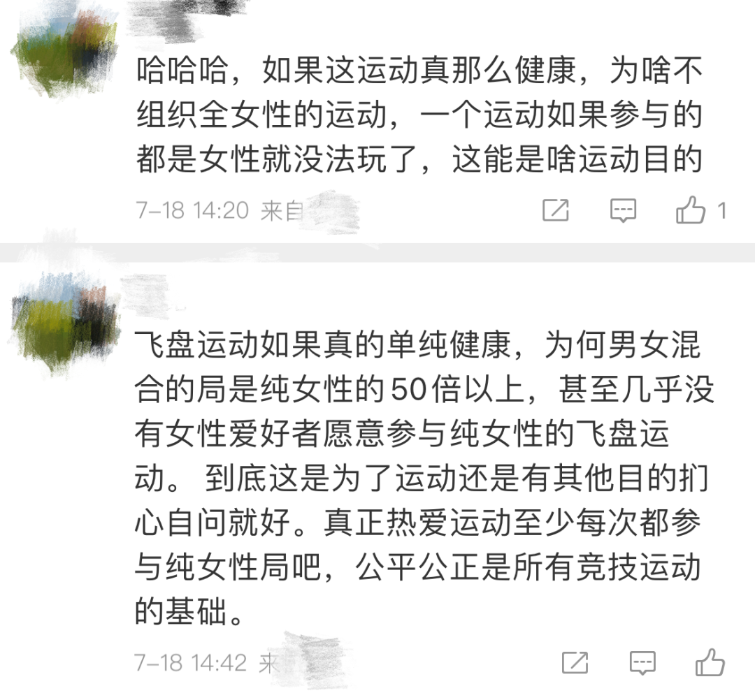 但慢慢的,网上也出现了一些不一样的声音。有人质疑这些去参加飞盘项目的这些女生动机不纯,也有人不仅看不到人家挥洒的汗水,还用难听的话语评价着她人的颜值。