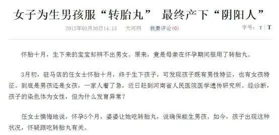 父母生下孩子后,发现孩子确实有“男性”的生理特征,于是喜出望外,以为孩子真的“转胎”变成男孩了。