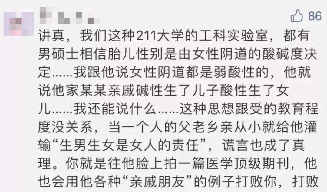 我明白了,“为什么要用偏方生子”从来就不是根本问题,重男轻女的观念已经深植入TA们心中,被当做唯一的真理。我们也无法强迫从他们嘴里听到他们不愿承认的答案。