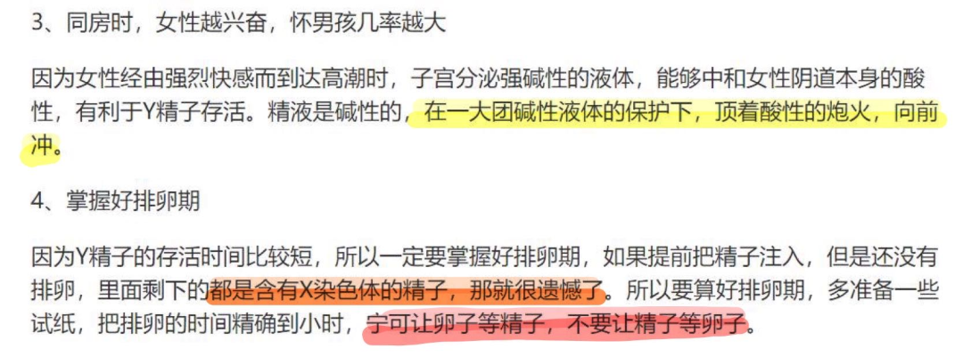 看到这段话,让我难过的并不是她说“子宫能分泌强碱性液体”、“Y染色体存活时间短”的错误认知,而是真切地感受到,那种她对Y精子的强烈保护欲。