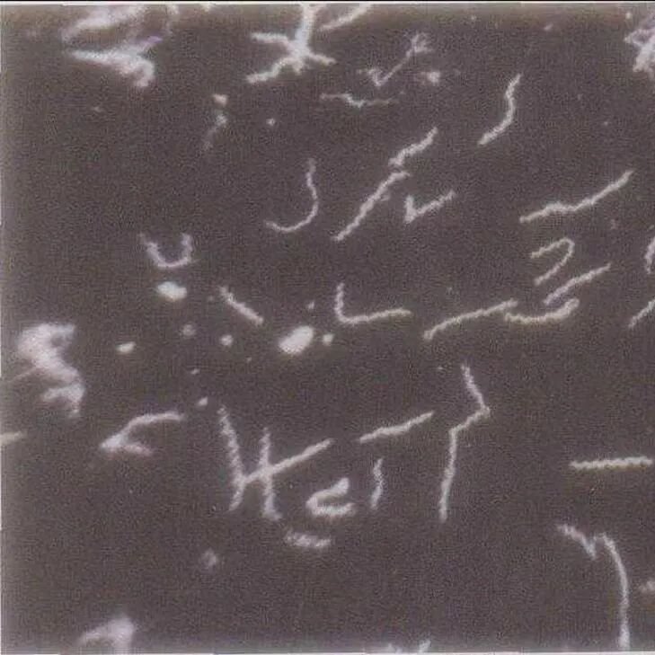 我们这项检查就是取皮损处的渗液,这些渗液里就含有梅毒的病原体——梅毒螺旋体,镀银染色后,在暗视野显微镜下去看,就能看到像弯曲的铁丝一样的螺旋体。