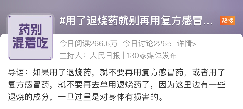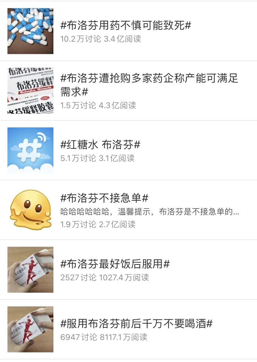 图源 微博热搜:布洛芬🙅对乙酰氨基酚