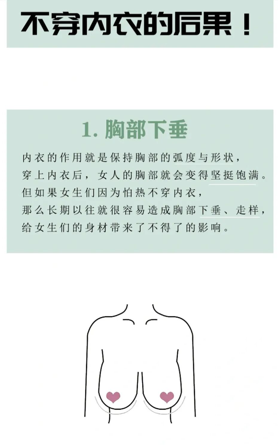 她还说,是有一天照镜子的时候突然发现自己的胸部有一点向下垂,觉得一点都不好看。在此之后就有点抗拒照镜子看自己的胸部、穿吊带了。