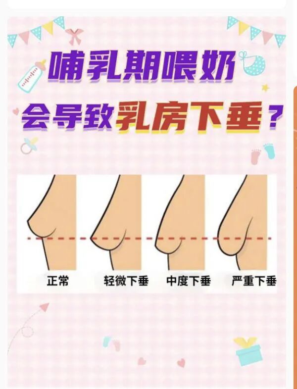但研究表明,乳房下垂和母乳喂养没有太明显的关系。出现乳房下垂,主要由于产妇进入孕期、哺乳期以后,乳房腺体结构受身体雌、孕激素影响出现腺体膨大改变。