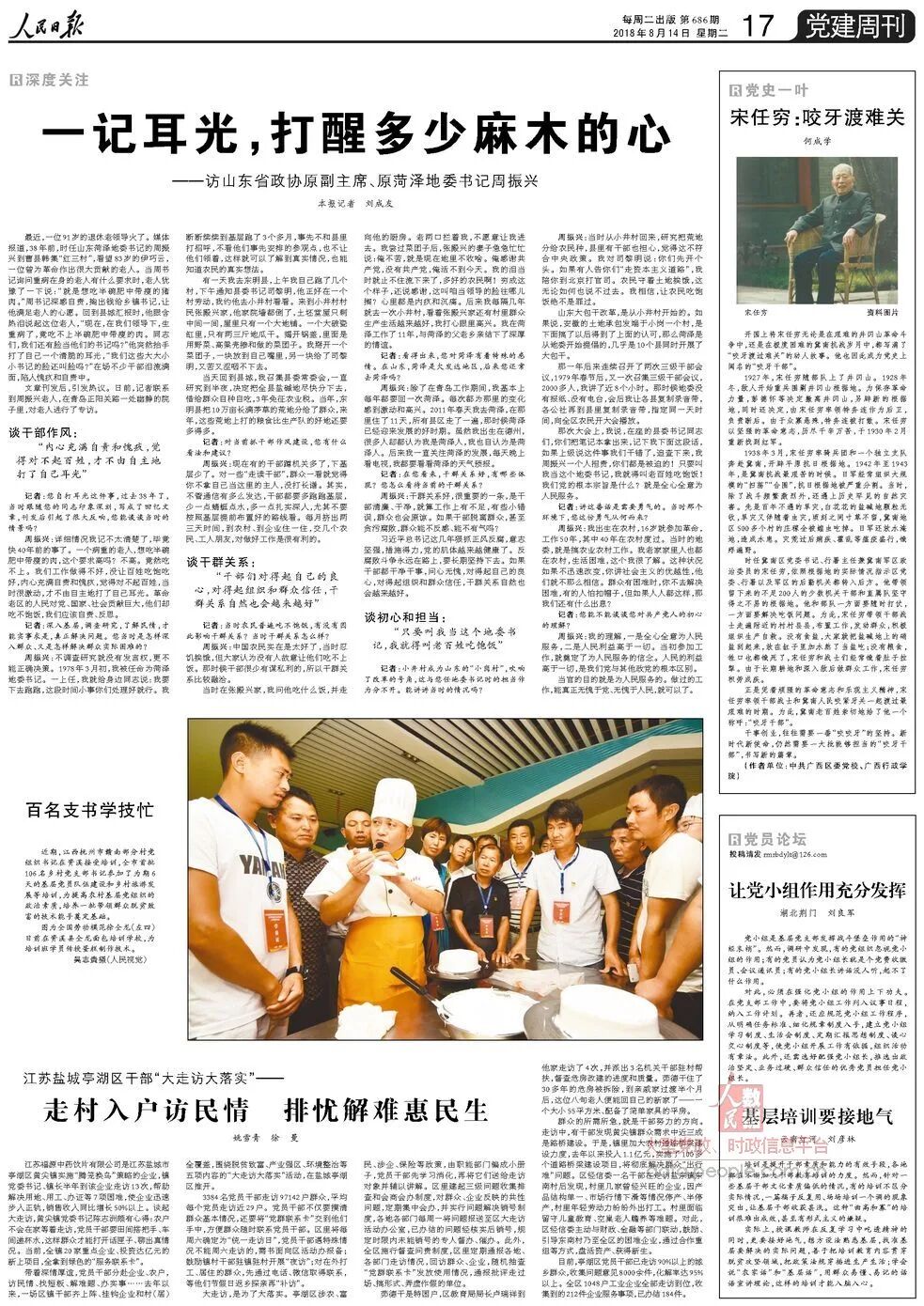 (本文原载于《人民日报》2018年8月14日第17版,通过记着对周振兴老人的专访,讲述一心为民、充满自责和愧疚来督促自己的干部作风;对得起良心和组织信任,获得的鱼水之情的干群关系;让老百姓吃饱饭,全新权益为人民服务的初心和担当。)