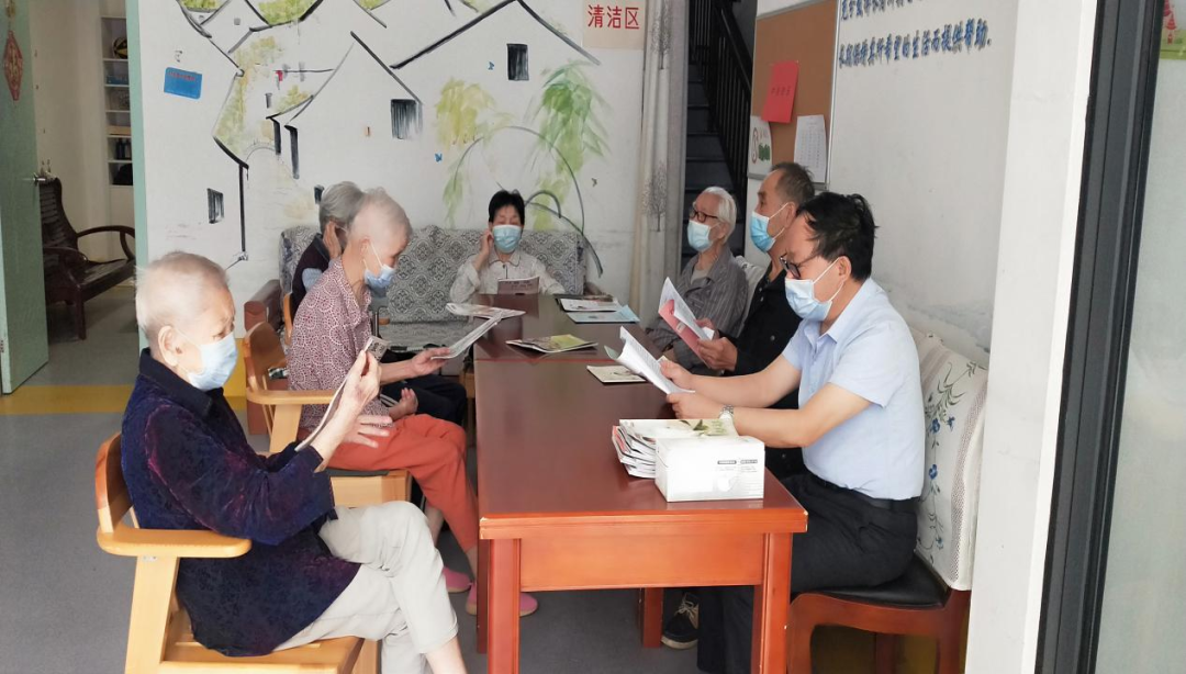9月28日,湖北省图书馆“沙湖书会”重阳节送温暖活动前往武昌区团结社区悦善养老院,为养老院护工、老人们送去报刊与数字资源,表达了节日的祝福。