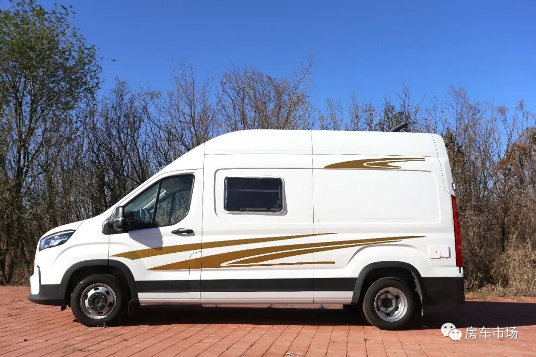 外观尺寸:5940*2110*2755毫米,轴距3760毫米,上蓝色牌照C证驾驶上路。动力上,搭载上汽“π”2.0T涡轮增压柴油发动机,匹配法国邦奇6at自动挡变速器,最大功率149千瓦,峰值扭矩375牛米。车身外部配有3米户外遮阳棚、水电接口、电动踏步,整车通过隔音保温止震处理,全车加装有纱门纱窗。