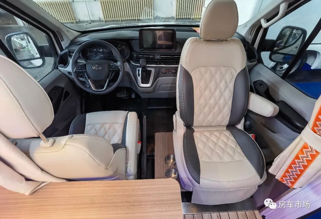 动态方面大通V90更倾向于轿车的驾驶体验,操控性出色即使是初次驾驶房车的新手也能轻松驾驭。配置有多功能方向盘、悬浮式液晶显示屏、定速巡航、倒车影像+倒车雷达等,主副驾驶座椅标配三点预紧式安全带,扶手可调节并配有安全气囊。副驾驶可向后部旋转。车内为4座布局,会客区配有两个乘驾座椅前部为升降餐桌。