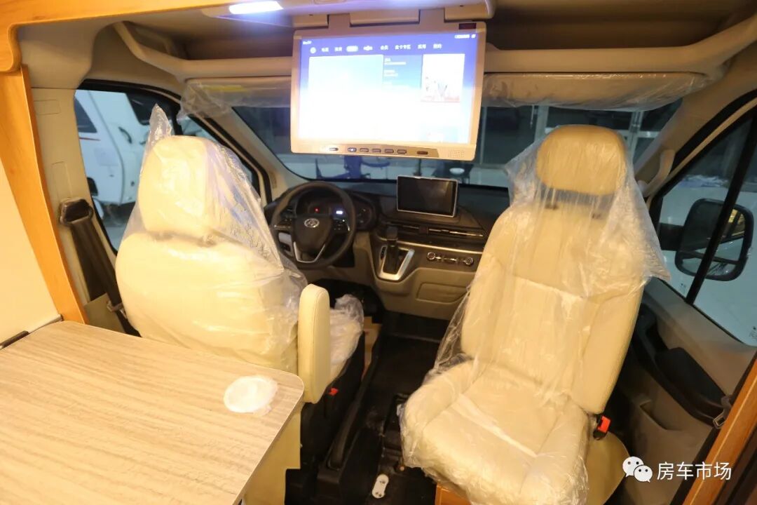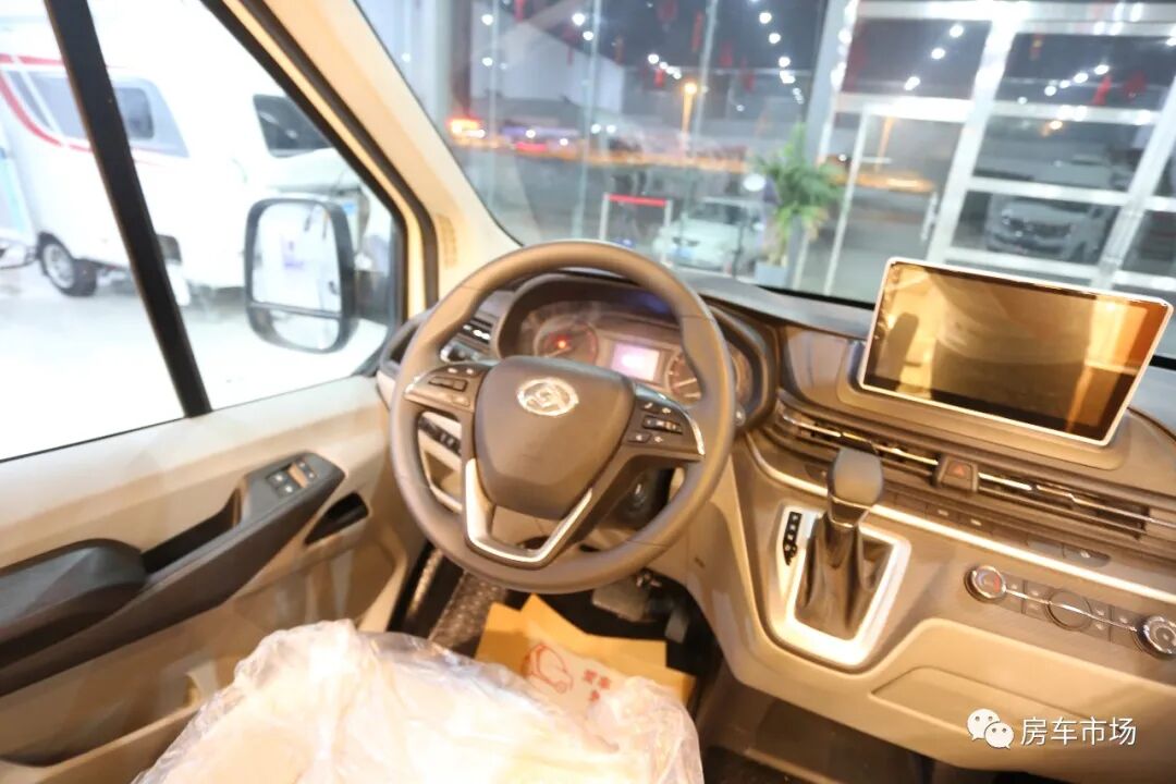 驾驶舱配有多功能方面盘、悬浮液晶显示屏,标配ABS+EBD+ESP、倒车影像+倒车雷达、定速巡航等。法国邦奇6AT纯自动挡变速器驾驶平顺性好,容易操控,开起来更加顺畅,即使是没开过房车的新手或者女士也能自信驾驶。