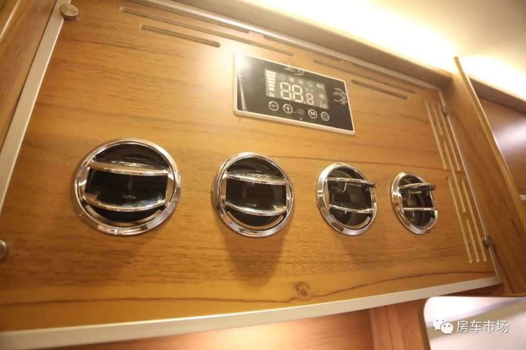 冷暖系统配有12V驻车空调,5000W柴油暖风系统,并标配电热水器。储物空间也非常丰富:顶部安装有多组储物吊柜,尾床下部是一个超大的储物仓。