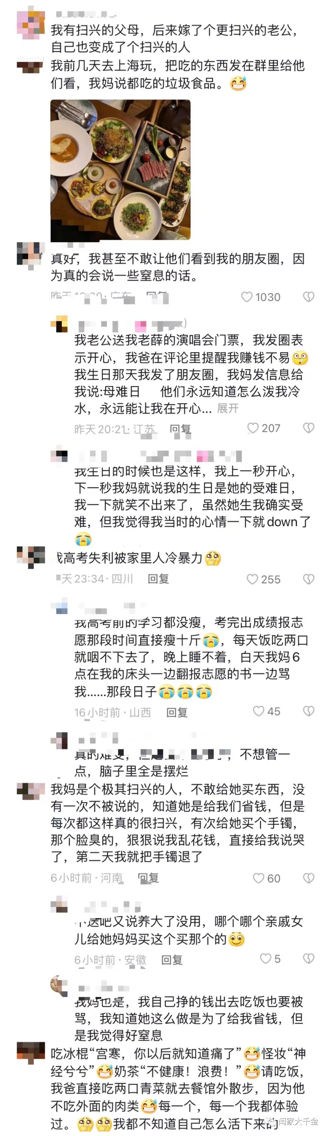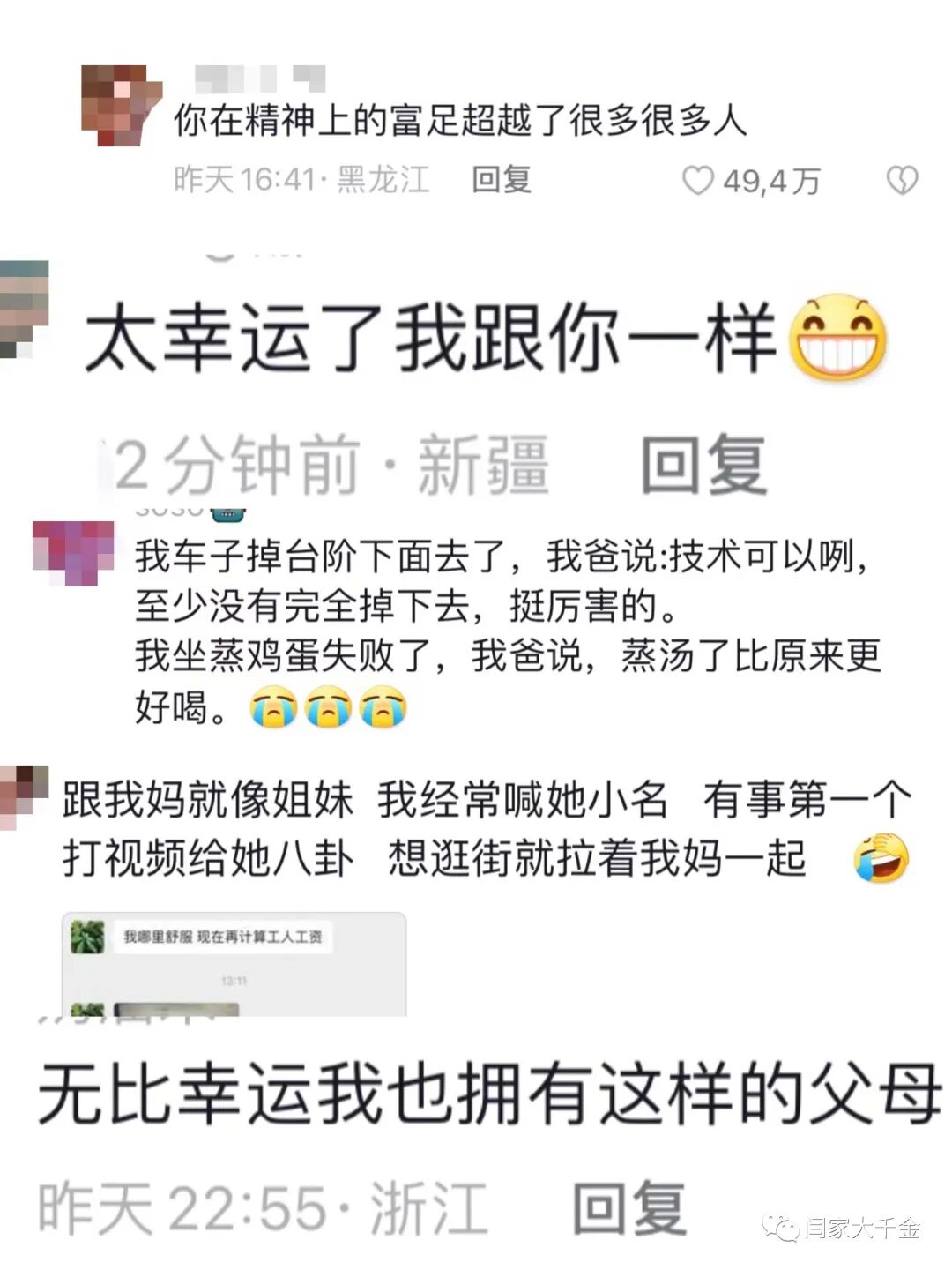 看着评论区里十几万的评论,看着那些觉得自己“幸运”的人,看着那些“窥探”别人幸福,羡慕别人这如此简单幸福的人,父母朋友们也该多反省学习: