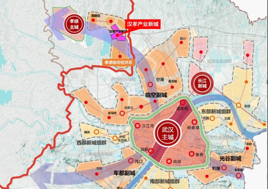 在说汉孝一体化之前,我们先来说说武鄂一体化,很多人觉得武汉和鄂州可以实现融城,主要是鄂州离武汉近,其实武鄂能融城发展的关键是光谷中心的东移,如果光谷不向东发展,而是选择向江夏南部发展,也许今天葛店也不会跟光谷如此亲密。