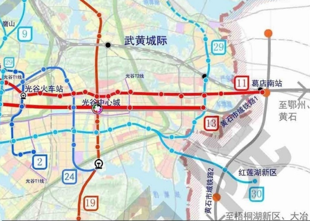 说起来武汉规划了好几条地铁到鄂州,除了已经通到鄂州葛店的11号线,以及最近提到的30号线,据说13号线也会从未来科技城向鄂州延伸,总之鄂州应该是武汉城市圈里唯一一个有3条武汉地铁的城市。