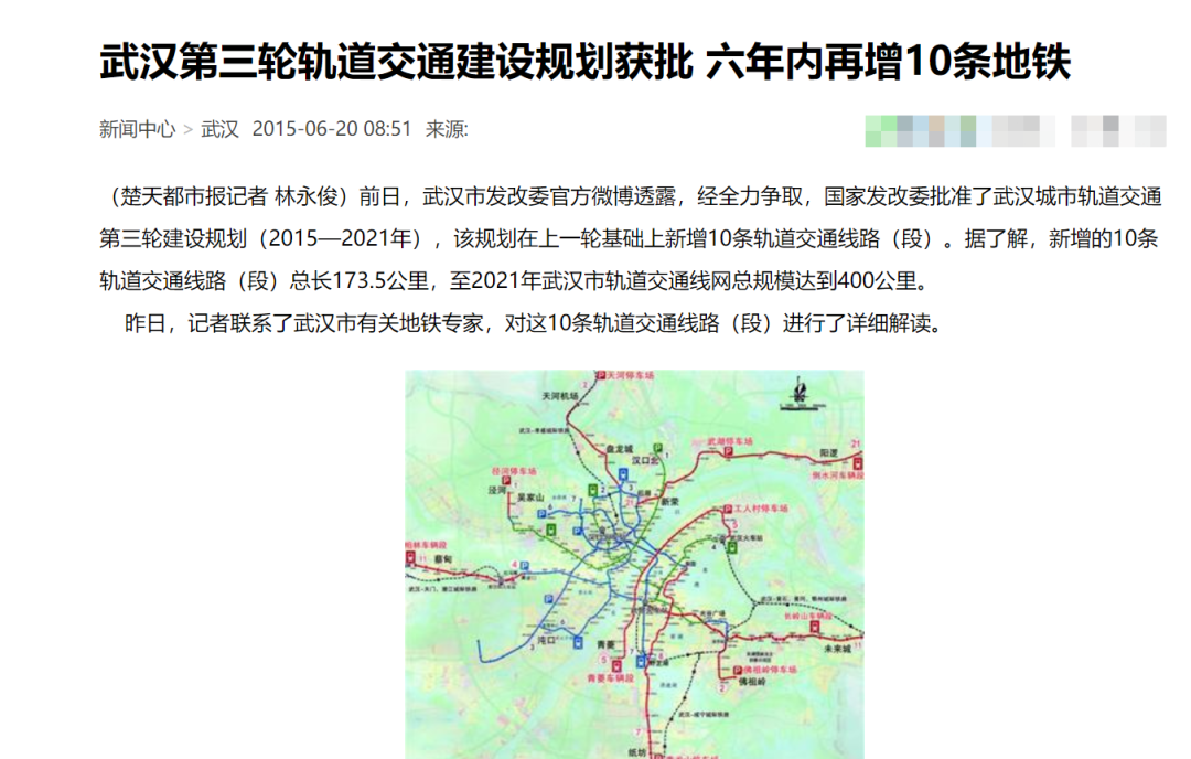 但不是所有城市都承受得起,且有些城市人口量较小,对地铁的需求不是特别强烈,但是也纷纷建地铁,甚至负债建地铁,在这种情况下地铁降温,所有城市一视同仁,流程越来越严格,获批就越来越难。在这种情况下,武汉地铁获批周期自然也拉长了。