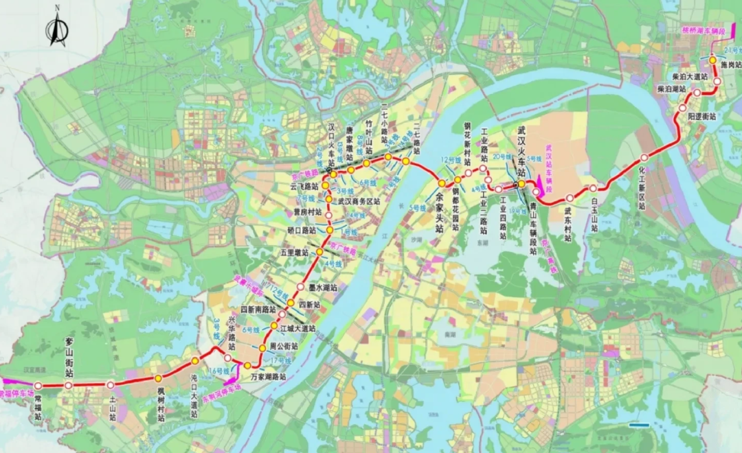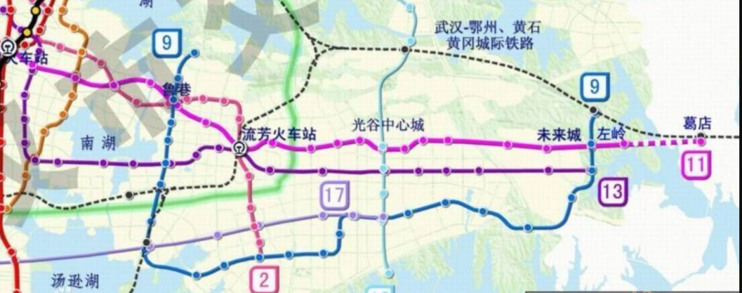 而现在,2号线客流量比较可观,加上武汉四大副城的建设,新的13号线连接临空副城和光谷副城,所以规划了现在的走势。