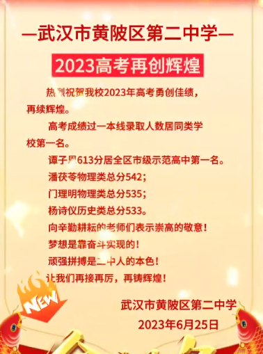 比如今年高考黄陂二中第一名考了613分,但是他当年中考成绩才378分。这个分数当年别说市区普高线没过(2020年市区普高线384分),甚至连黄陂六中的录取线都没有过(2020年黄陂六中380分)。