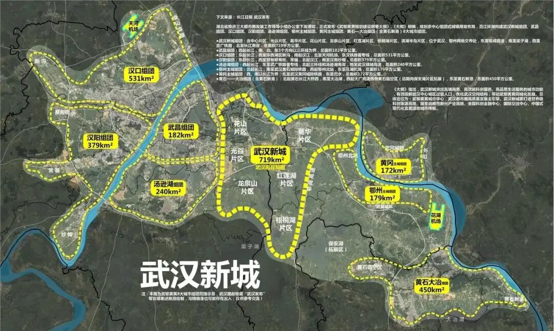 纵观武鄂黄黄都市圈八大组团,你会发现除了武汉新城组团和汤逊湖组团,其他组团都是以已有地区来命名的。