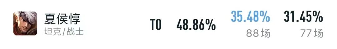 第二点,随着刺客型打野的逐渐没落,夏侯惇作为坦野的领军人物,也在中高分段里有了更多的表现机会,甚至成为了KPL的第一野王,拥有接近70%的BP,再次登顶KPL的打野榜。