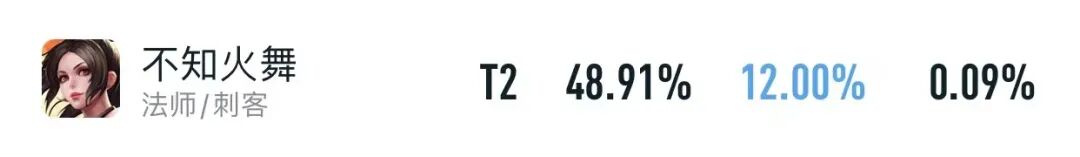 以上是不知火舞最新的巅峰赛数据,出场率虽然不低,但胜率却连49%都不到,由此可见,不知火舞是比较容易被翻盘的。