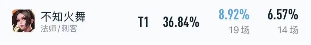 以上是不知火舞在KPL新赛季的数据,36.84%胜率+15.49%BP率,表现非常一般,说明这位昔日的“万金油”,在职业选手和教练的眼里,确实有点跟不上大环境了。