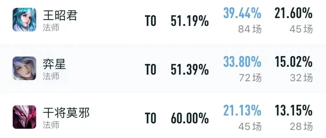 也正因如此,扁鹊的胜率再次来到54%以上,仅次于上官婉儿,只不过,扁鹊属于数值英雄,在高分段里存在机制上的缺陷,需要后三楼看阵容选才行,所以,我并没有把他排进T1。