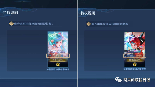 另外,还有英雄的金色名字,套装皮肤的金色名字,拥有单个英雄的全部皮肤就可以获得英雄金色名称,或者收齐某套系列皮肤,该系列皮肤也可以获得金色名字。