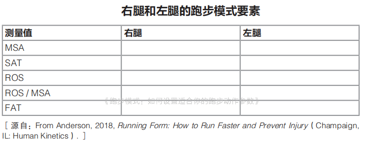 在3次视频中分别对左腿和右腿进行上述角度的测量,将所有数值记录在表格中。这样跑者就能够用一种客观、量化的方式改进自己的跑步模式。