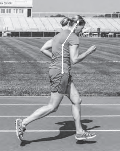 要评估姿势,应选取视频中跑者支撑中期的一个时刻,在跑者身体上定位三个点:髋部中心、胸部中心、头部中心,然后从髋部开始画一条直线连接至胸部中心,再从胸部到头部中心画一条直线。