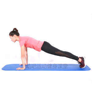 1.俯撑姿势,双手双脚撑地,双手距离微比肩宽,手臂伸直,身体从头到踝呈一条直线。