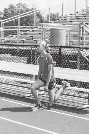 2.如有可能,将右脚趾放6~8英寸(15.24~20.32 厘米)高的物体或台阶上。身体大部分重量直接放在左脚掌的中部位置。