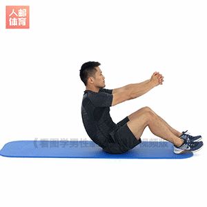 采用卷腹姿势起身,上身依次转向左右两侧,双手随之落于大腿侧面。每侧稍作停顿,两侧交替进行,重复规定次数。