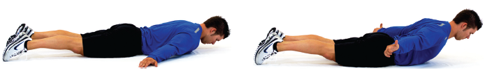 激活臀部肌肉,收下巴,肩胛骨向后收,缓慢向地面降低上半身,再抬起至中立姿势