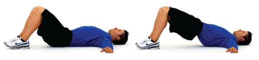 抬高骨盆离开地面,直至膝、髋、肩呈一条直线后,缓慢降下
