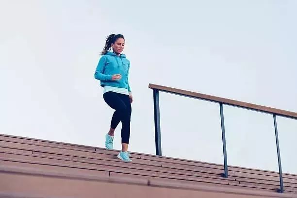 3、在楼梯训练时不要跨越台阶,应该一步一个台阶。当我们运用自然的力量去运动时,就会变得轻松和高效。