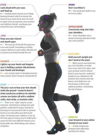 相对心率、配速、时间等计量数据,跑姿是很难解释清楚的模糊概念。好像听说过、看过大概怎么跑,但又不晓得确切的细节。在掌握正确的跑姿之前,先要理清楚跑步将要用到的身体部位: