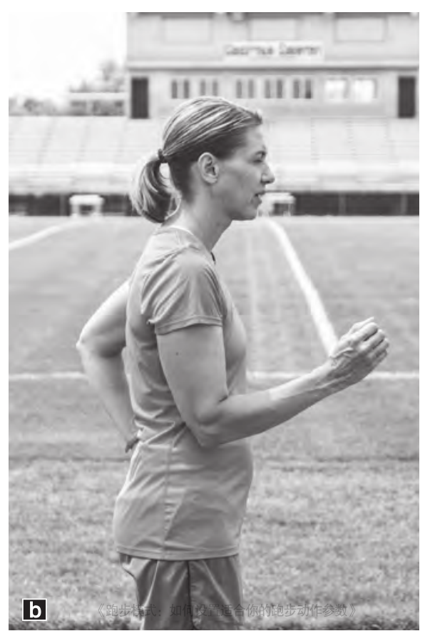 b. 手臂向前摆动时,肘关节应位于髋部附近