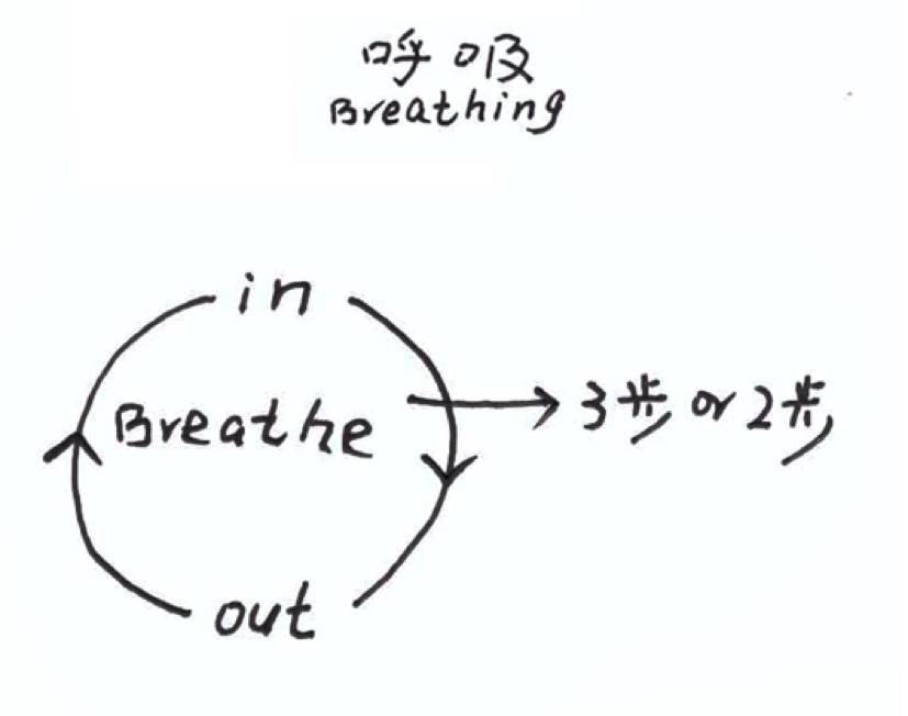 通常推荐2步一呼、2步一吸或3步一呼、3步一吸的呼吸方式。
