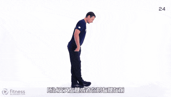 交叉双腿的站姿,俯身之后手在背后相握并且向上伸展,但是手肘要保持一定的弯曲,不能完全伸直,然后尽可能低头和向前移动手臂;拉伸肩部三角肌前束、胸肌、斜方肌以及大腿后侧的腘绳肌。