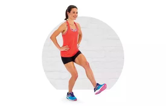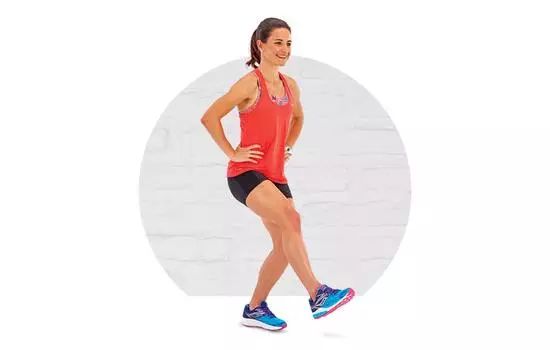 右腿向后撤步,同时向体侧抬高,仿佛你刚越过一个栏架或障碍。(模仿跨栏动作。)用左腿重复。连续交换腿做。