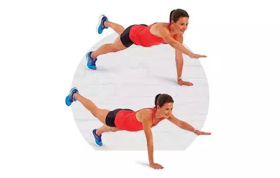 摆出平板支撑位置。在保持背部平直的情况下,抬起右臂和左腿离地。回到平板支撑位置,左臂和右腿重复刚才动作。